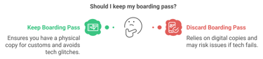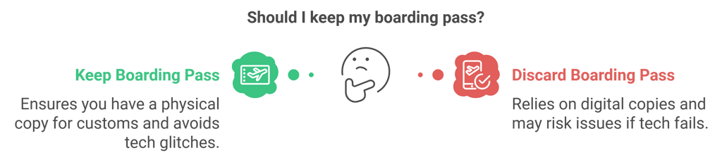 Don’t discard your boarding pass as soon as you board the plane. In many countries, customs officials may request it to confirm your arrival. Additionally, having a paper copy can help avoid technical glitches with your phone or apps.
