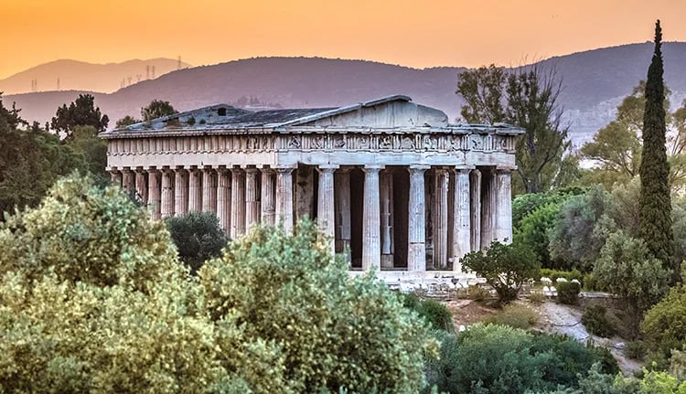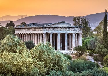 The site of ancient Athens' marketplace, home to historical ruins and the Temple of Hephaestus.