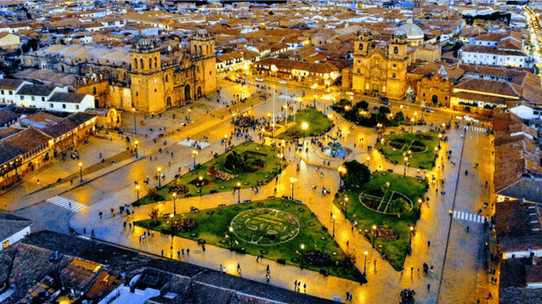 The central square of Cusco, home to significant cultural landmarks such as the Cathedral of Cusco and the Church of La Compañía de Jesús, both built atop former Inca structures.