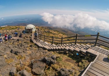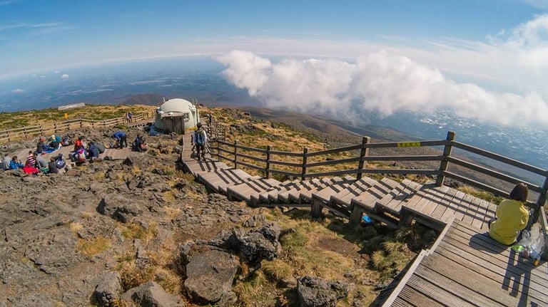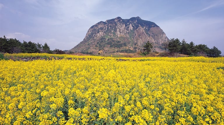 Discover Jeju's Hallasan National Park, where lush trails lead to breathtaking volcanic peaks and rich biodiversity all year round.