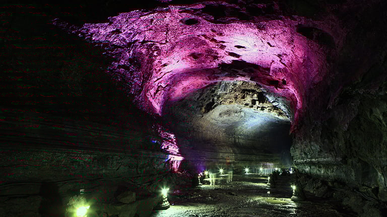 Explore the mysterious Manjanggul Cave, one of the world’s longest lava tubes, showcasing impressive volcanic formations.