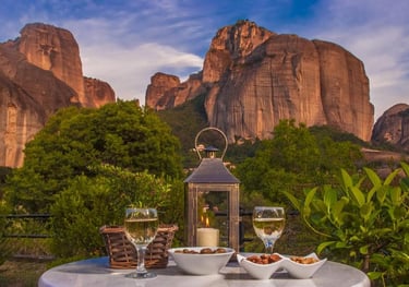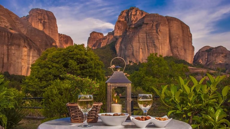 Accommodations that combine comfort with proximity to Meteora’s rock formations.