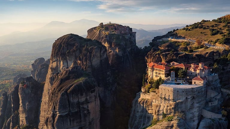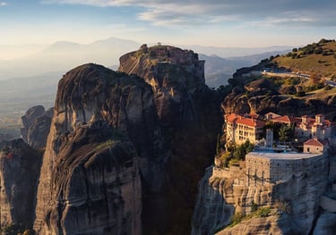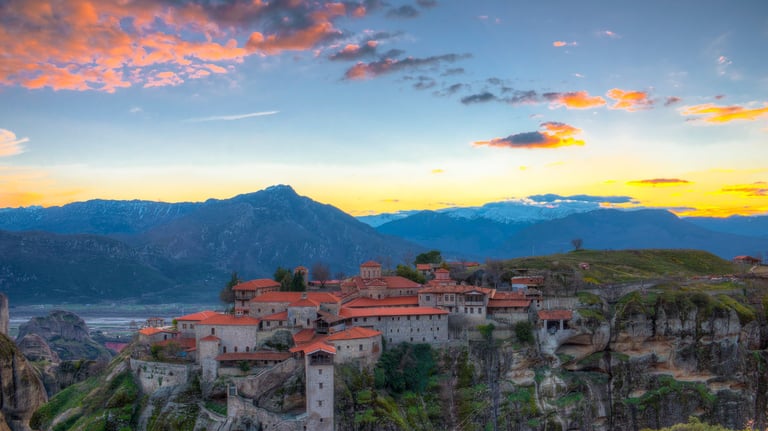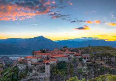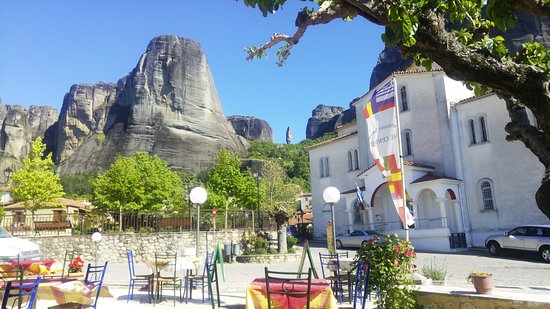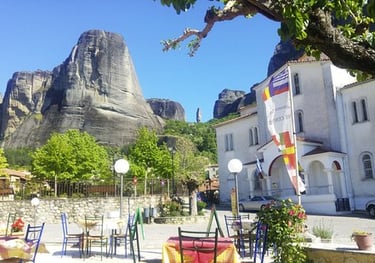 The nearby town with a range of accommodations, local shops, and scenic views, serving as a base for exploring Meteora.