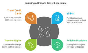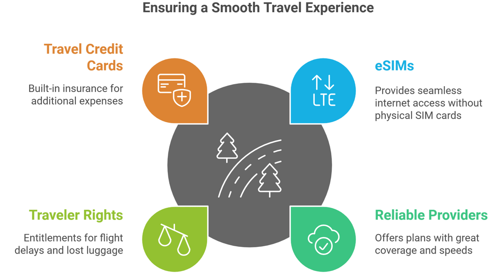 Beyond connectivity, know your rights as a traveler. If your flight is delayed for over three hours or your luggage is lost, you may be entitled to compensation. Travel credit cards with built-in insurance can help cover additional expenses.