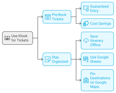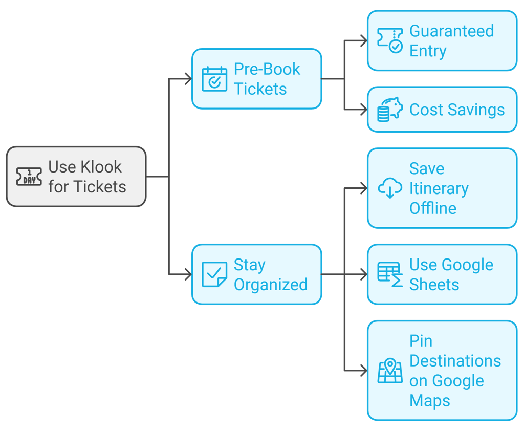 Pre-booking activities or tours ensures availability and often comes with discounts. Platforms like Klook make this process simple and efficient, giving you more time to enjoy your destination.